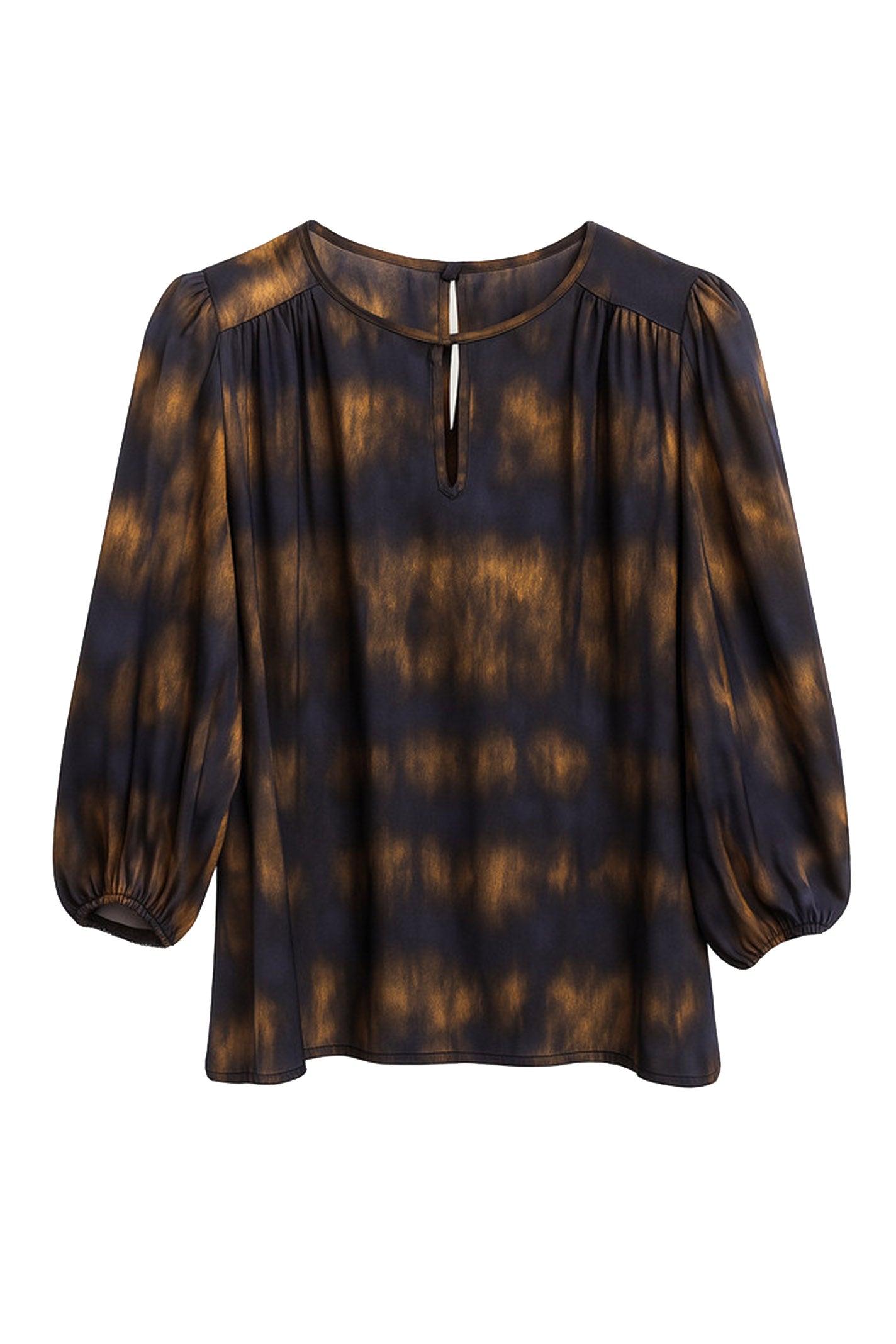 Skab et elegant udtryk ved at kombinere en printet 2-Biz bluse med en ensfarvet nederdel – det giver en flot kontrast, hvor blusen får lov til at være i centrum.