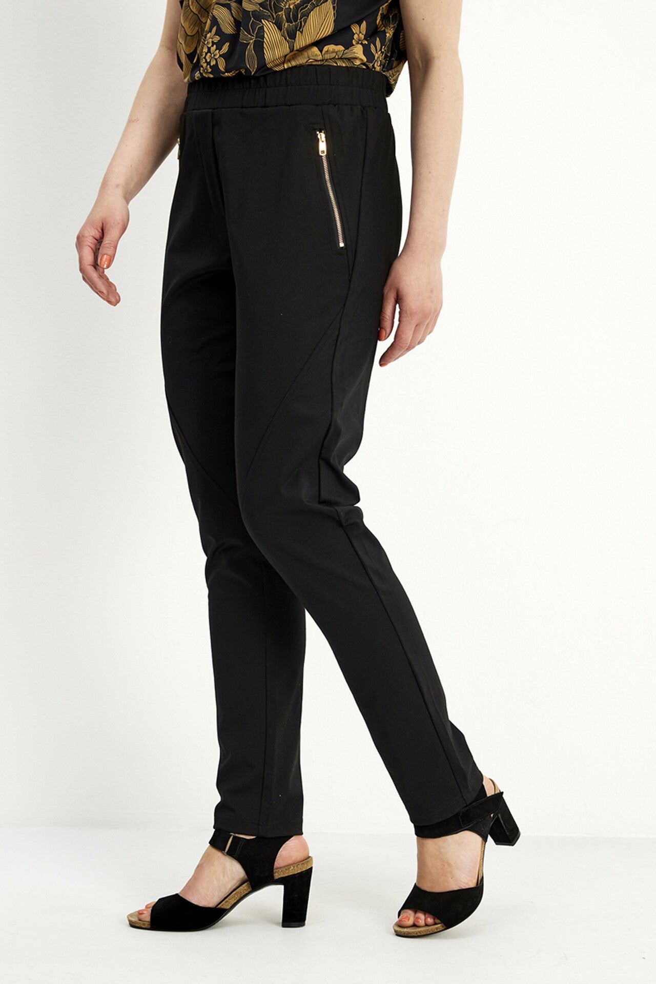 En stor del af komforten kommer fra materialevalget. Mange modeller indeholder stretch – ofte en blanding af polyester og elastan – der giver optimal bevægelsesfrihed og gør, at bukserne føles lækre at have på fra morgen til aften. Du finder alt fra bukser med elastik i taljen, som giver fleksibilitet i hverdagen, til designs med bæltestropper og stiklommer, der tilbyder en mere klassisk og funktionel stil. De små designdetaljer gør forskellen, fordi de både understøtter den rene linje i designet og gør bukserne praktiske i brug.