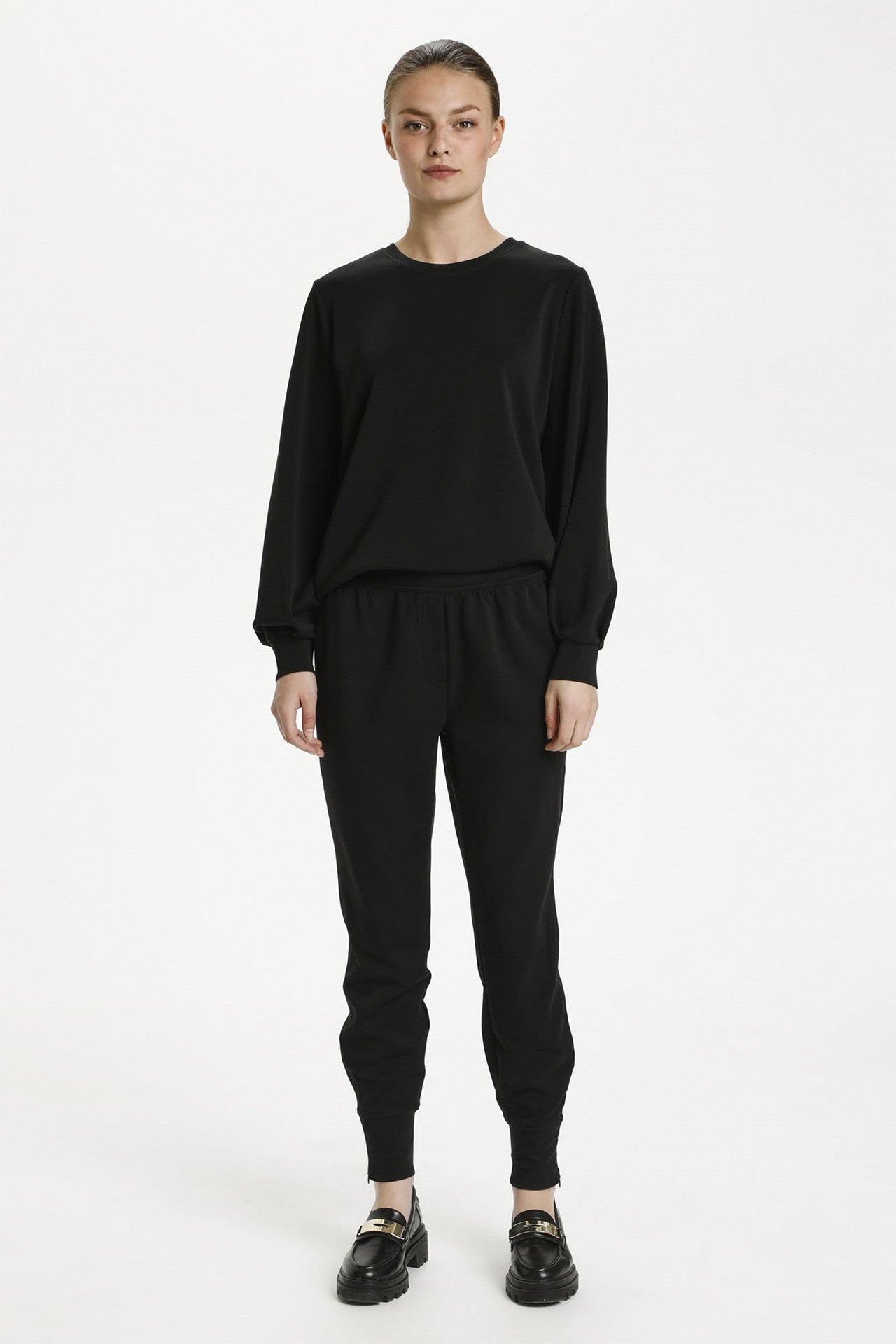 Mange styles er desuden udstyret med detaljer, der gør dem praktiske i en travl hverdag. Små lommer, justerbare snører, fine ribkanter eller særskilte strukturer fremhæver snittet, uden at komforten forsvinder. Det betyder, at du nemt kan tage et par afslappede bukser og style dem med en skarp blazer fra Gestuz eller en elegant strik fra Bitte Kai Rand – og pludselig har du et outfit, der fungerer til både kontor og café.