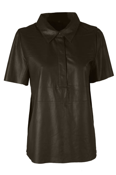 Lækker skind bluse fra Notyz med korte ærmer og skjortekrave i halsen.