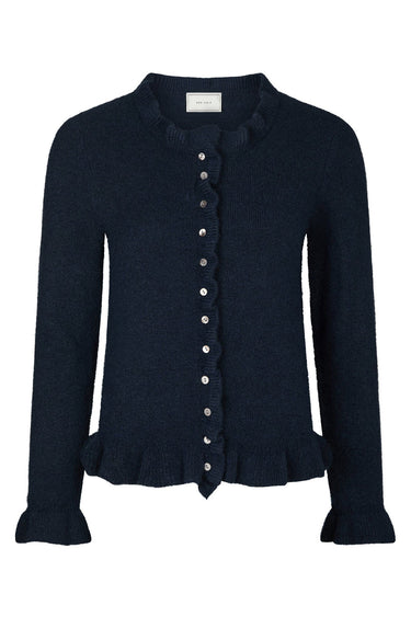 OBS! Fjernlager. Levering kan blive forlænget med 2-3 dage, hvis varen ikke findes i vores butik lige nu.Feminin cardigan fra Neo Noir med lange ærmer, rund hals og fine flæsedetaljer.Cardiganen har også en lækker kvalitet og knaplukning langs fronten.