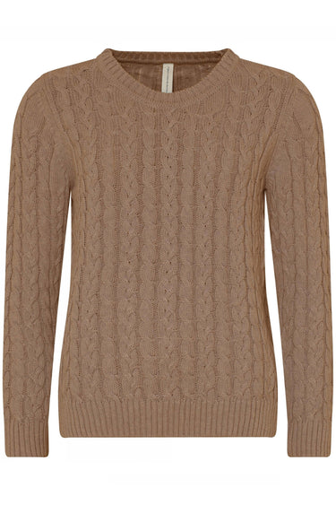 2566 Cabblestitch Oneck jumpe Camel Beig