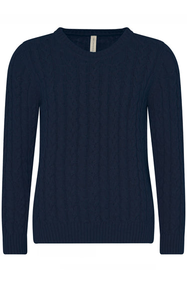 2566 Cabblestitch Oneck jumpe Marine Blu