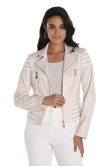 OBS! Fjernlager. Levering kan blive forlænget med 2-3 dage, hvis varen ikke findes i vores butik lige nu.Super cool blazer fra Frank Lyman med lange ærmer, en lille krave i halsen og fine lynlåsdetaljer.Jakken har også cool detaljer og et feminint biker udtryk.