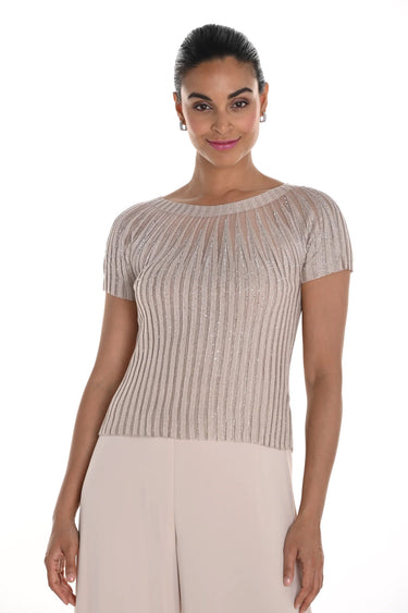 OBS! Fjernlager. Levering kan blive forlænget med 2-3 dage, hvis varen ikke findes i vores butik lige nu.Den smukkeste top fra Frank Lyman med korte ærmer, bådudskæring i halsen og de flotteste glimmerdetaljer.