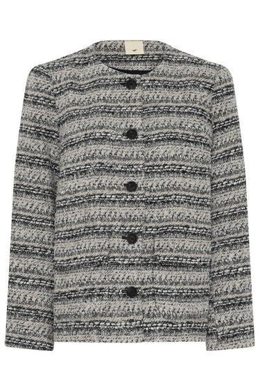 OBS! Fjernlager. Levering kan blive forlænget med 2-3 dage, hvis varen ikke findes i vores butik lige nu.Smuk jakke fra Heartmade med lange ærmer, rund hals og store knapper langs fronten.Jakken har også en kort længde, en super flot boucle kvalitet og fine lommer foran.