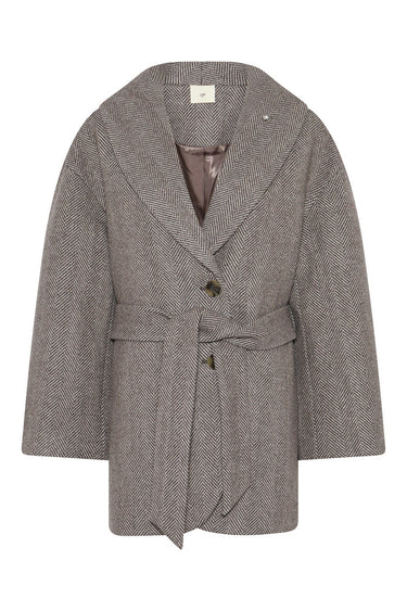 OBS! Fjernlager. Levering kan blive forlænget med 2-3 dage, hvis varen ikke findes i vores butik lige nu.Smuk jakke fra Heartmade med lange brede ærmer, et kimono-inspireret snit med bred krave og afrundede kanter i bunden.Jakken har også et flot mønster, store knapper foran og et bredt bindebælte til at fremhæve taljen.