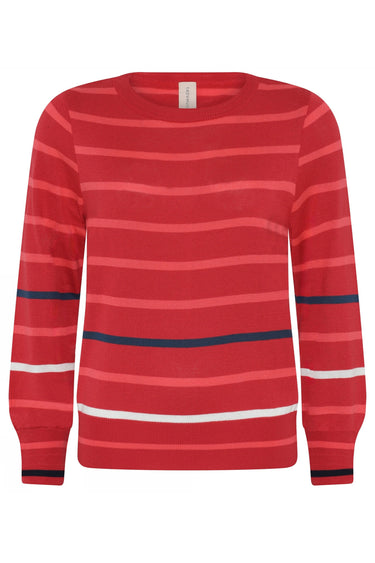 3864 Sporty striped oneck pul Crimson
