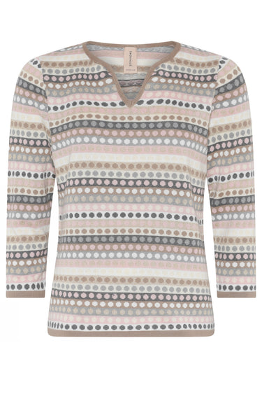 3866 Dotted 3/4 sleeve pullove Beige/Rose