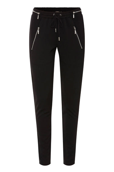 OBS! Fjernlager. Levering kan blive forlænget med 2-3 dage, hvis varen ikke findes i vores butik lige nu.Løstsiddende og casual bukser fra Rue de Femme med et strejf af luksus! Bukserne fåes med guld eller sølv lynlås i taljen og på lommerne, som tilføjer en subtil glans til dit look.