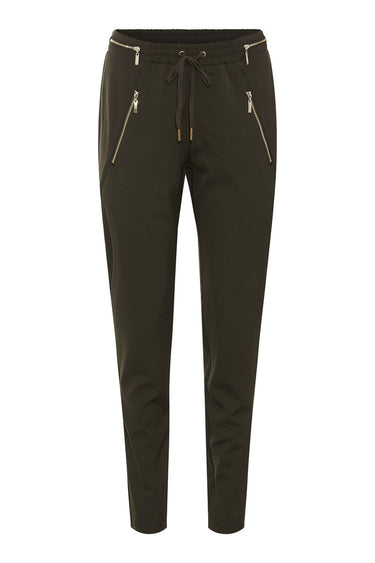 OBS! Fjernlager. Levering kan blive forlænget med 2-3 dage, hvis varen ikke findes i vores butik lige nu.Løstsiddende og casual bukser fra Rue de Femme med et strejf af luksus! Bukserne fåes med guld eller sølv lynlås i taljen og på lommerne, som tilføjer en subtil glans til dit look.