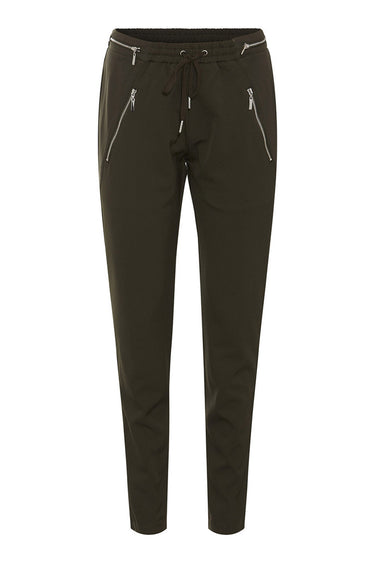OBS! Fjernlager. Levering kan blive forlænget med 2-3 dage, hvis varen ikke findes i vores butik lige nu. Casual bukser fra Rue de Femme med et strejf af luksus. Lynlåse i sølv på taljen og lommerne tilføjer en subtil glans til det afslappede design.