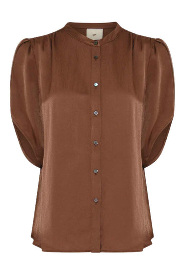 - OBS! Fjernlager. Levering kan blive forlænget med 2-3 dage, hvis varen ikke findes i vores butik lige nu.Et smukt og feminint valg fra Heartmade med sine korte ærmer og elegante stolpelukning foran. Den delikate kinakrave tilføjer et strejf af raffinement til denne stilfulde skjorte, mens rynkerne på skuldrene giver et subtilt og sofistikeret udseende.
