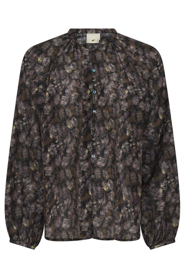 OBS! Fjernlager. Levering kan blive forlænget med 2-3 dage, hvis varen ikke findes i vores butik lige nu.Elegant silke skjorte fra Heartmade med lange let puffede ærmer, kinakrave i halsen og knaplukning langs fronten.
