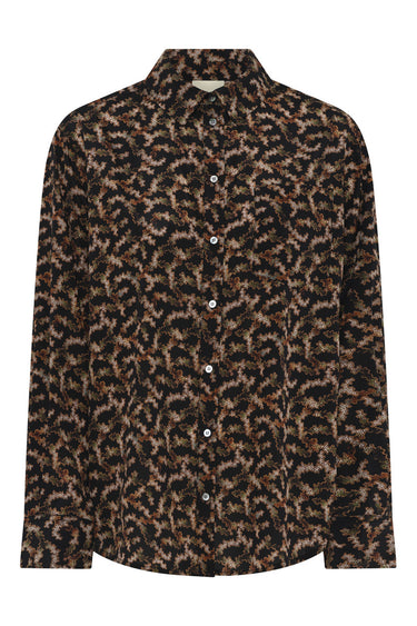 OBS! Fjernlager. Levering kan blive forlænget med 2-3 dage, hvis varen ikke findes i vores butik lige nu.Let oversized skjortebluse fra Heartmade med lange ærmer, krave i halsen og knaplukning langs fronten. Skjorten har også et super fint print og en lækker silkekvalitet.