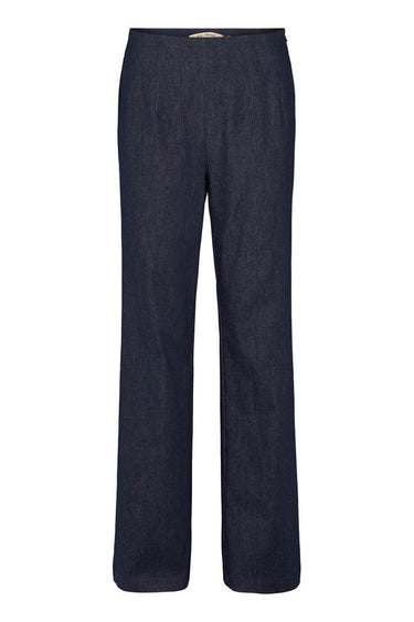 - OBS! Fjernlager\nLeveringen kan blive forlænget med 1-2 dage, hvis varen ikke er at finde i vores butik lige nu.\n\nModel 6977 Olana wide pants TROUSERS RDF216 200 Blue denim\n\n91% Cotton 7% Polyester 2% Ela