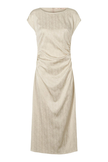 OBS! Fjernlager. Levering kan blive forlænget med 2-3 dage, hvis varen ikke findes i vores butik lige nu.Tætsiddende kjole fra Rue de Femme med korte ærmer, draperet effekt i siden og diskret slids bagpå. Elegant og flatterende silhuet.