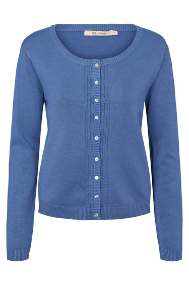 OBS! Fjernlager. Levering kan blive forlænget med 2-3 dage, hvis varen ikke findes i vores butik lige nu.Klassisk cardigan fra Rue de Femme med lange ærmer, rund halsudskæring og fine knapper langs fronten.