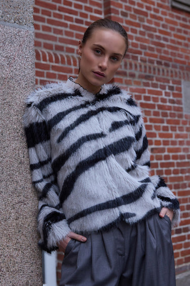 OBS! Fjernlager. Levering kan blive forlænget med 2-3 dage, hvis varen ikke findes i vores butik lige nu.Super cool jakke fra Rue de Femme med lange ærmer, rund hals og en smart kvalitet
