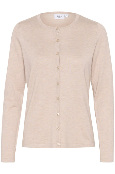 OBS! Fjernlager. Levering kan blive forlænget med 2-3 dage, hvis varen ikke findes i vores butik lige nu.Fin og enkel cardigan fra Saint Tropez med lange ærmer, rund hals og knaplukning langs fronten.