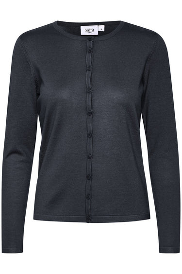 Fin og enkel cardigan fra Saint Tropez med lange ærmer, rund hals og knaplukning langs fronten.