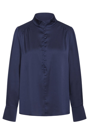 - OBS! Fjernlager\nLeveringen kan blive forlænget med 1-2 dage, hvis varen ikke er at finde i vores butik lige nu.\n\nAcaciaBBChatrine blouse has a classic, regular fit and is designed with elegant buttons at the front, providing a sophisticated expression.Style the blouse with tailored pants and stilettos for a formal look, or pair it with jeans and ankle boots for a relaxed yet elegant style.- Regular fit- Button details at the front- Light and elegant- Perfect for both work and leisureRESPONSIBLE: 100% Polyester (Recycled)\n\nModel AcaciaBBChatrine blouse Blouse BBW4239 Medieval Blue\n\n100% Polyester (Recycled) - RE