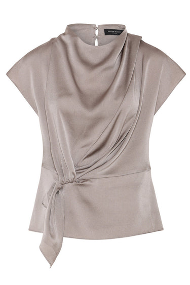 OBS! Fjernlager. Levering kan blive forlænget med 2-3 dage, hvis varen ikke findes i vores butik lige nu.Elegant top fra Bruuns Bazaar med små ærmer, høj hals og de flotteste draperet effekter over brystet.