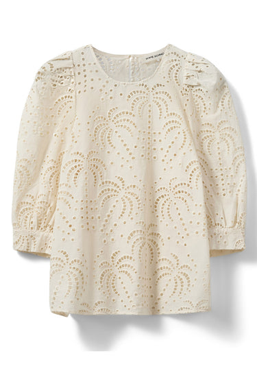 Feminin broderi anglaise bluse fra Sofie Schnoor med ½ lange pufærmer, rund hals og en super fin kvalitet.