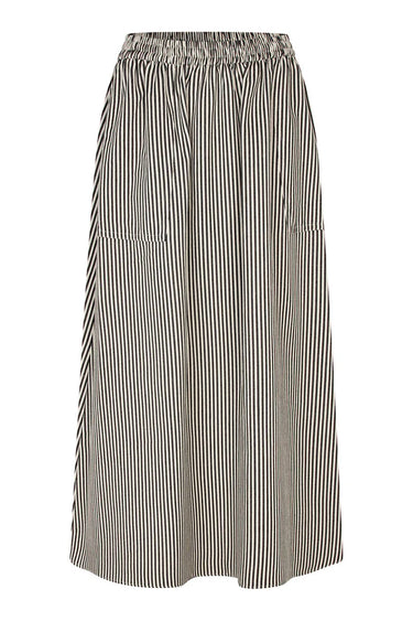 - OBS! Fjernlager. Levering kan blive forlænget med 2-3 dage, hvis varen ikke findes i vores butik lige nu.Alsidig nederdel fra Lollys Laundry, der både er elegant og afslappet. Med sin lette og luftige struktur, og smarte striber, får nederdelen et sofistikeret, men samtidig minimalistisk udtryk.