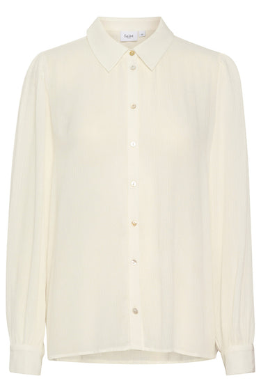 OBS! Fjernlager. Levering kan blive forlænget med 2-3 dage, hvis varen ikke findes i vores butik lige nu.Klassisk skjortebluse fra Saint Tropez med lange ærmer, skjortekrave i halsen og knaplukning langs fronten.