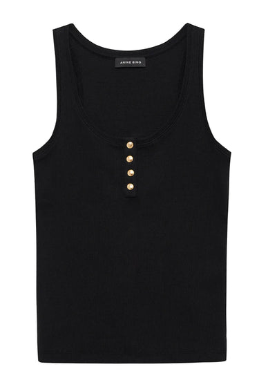 - Moderne Henley-inspireret tank top fra Anine Bing i en lækker ribbet kvalitet med fine små guld-monogram knapper over brystet.