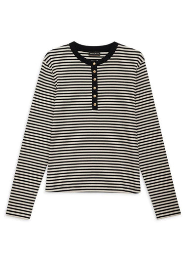 Fin tee fra Anine Bing med lange ærmer, rund hals og flotte guldknapper over brystet.