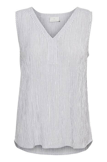 OBS! Fjernlager. Levering kan blive forlænget med 2-3 dage, hvis varen ikke findes i vores butik lige nu.Sød top fra Kaffe med v-hals, et klassisk stribet print og en fin silhuet.