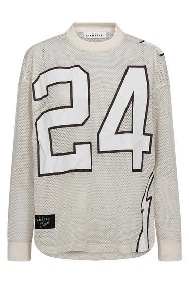 OBS! Fjernlager. Levering kan blive forlænget med 2-3 dage, hvis varen ikke findes i vores butik lige nu.Smart langærmet tee fra Haute L'amitié med rund hals, et stort print på fronten og et cool sporty udtryk.