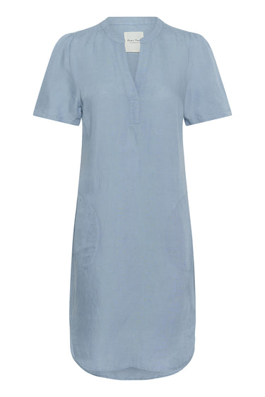 OBS! Fjernlager. Levering kan blive forlænget med 2-3 dage, hvis varen ikke findes i vores butik lige nu.Fin enkel kjole fra Part Two med korte ærmer og v-udskæring i halsen.