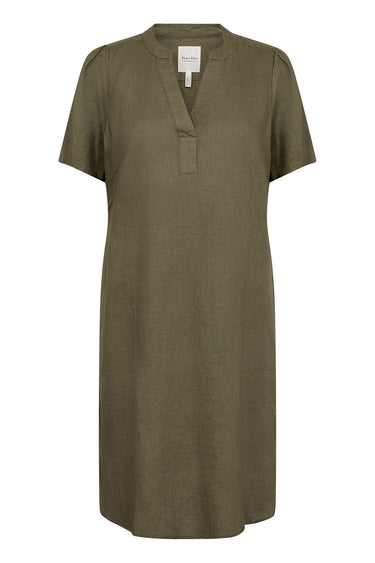 OBS! Fjernlager. Levering kan blive forlænget med 2-3 dage, hvis varen ikke findes i vores butik lige nu.Fin enkel kjole fra Part Two med korte ærmer og v-udskæring i halsen.