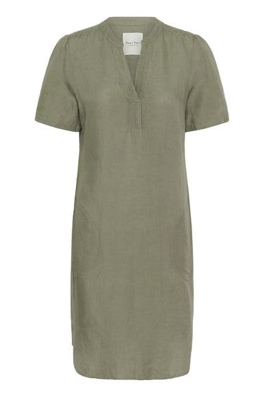 OBS! Fjernlager. Levering kan blive forlænget med 2-3 dage, hvis varen ikke findes i vores butik lige nu.Fin enkel kjole fra Part Two med korte ærmer og v-udskæring i halsen.