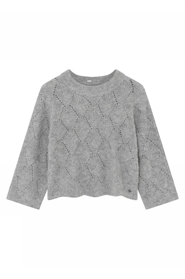 OBS! Fjernlager. Levering kan blive forlænget med 2-3 dage, hvis varen ikke findes i vores butik lige nu.Fin strik fra Gustav med med lange ærmer, rund halsudskæring og et flot hullet mønster.