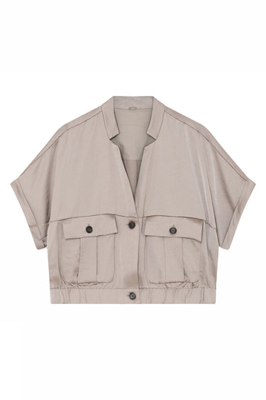 OBS! Fjernlager. Levering kan blive forlænget med 2-3 dage, hvis varen ikke findes i vores butik lige nu.Smart utility-inspireret jakke fra Gustav med korte ærmer, v-udskæring i halsen og fine lommer på fronten.Jakken har også en cropped længde, elastikkant i bunden og knaplukning foran.