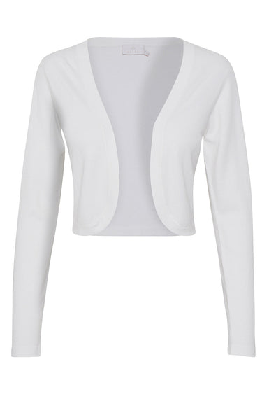 OBS! Fjernlager. Levering kan blive forlænget med 2-3 dage, hvis varen ikke findes i vores butik lige nu.Fin og enkel bolero fra Kaffe med lange ærmer, et klassisk snit og en dejlig finstrikket kvalitet.