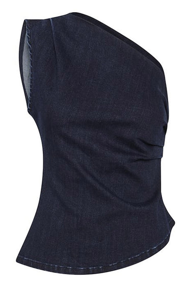 AyoMW 158 Off Shoulder Top Dark Blue UnWash
