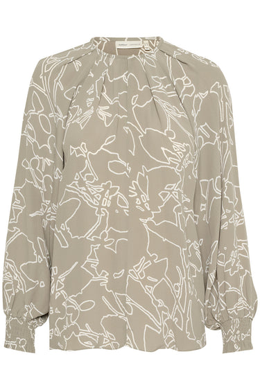 OBS! Fjernlager. Levering kan blive forlænget med 2-3 dage, hvis varen ikke findes i vores butik lige nu.Flot bluse fra InWear med lange pufærmer, rund hals og tætsiddende smock manchetter. Blusen har også en afslappet silhuet med et flot print.