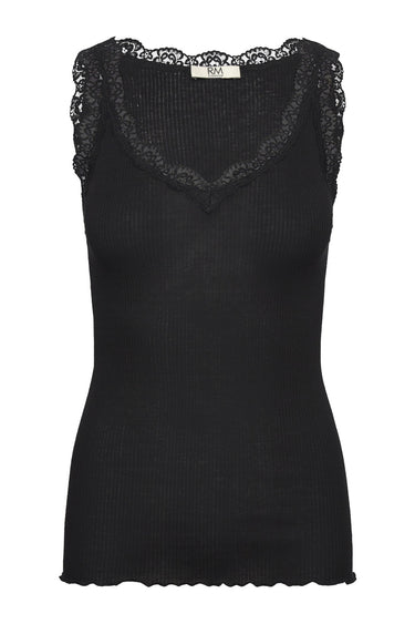 Den lækreste bløde blondetop fra Rosemunde med en tætsiddende pasform og en fin krøllet kant i bunden.