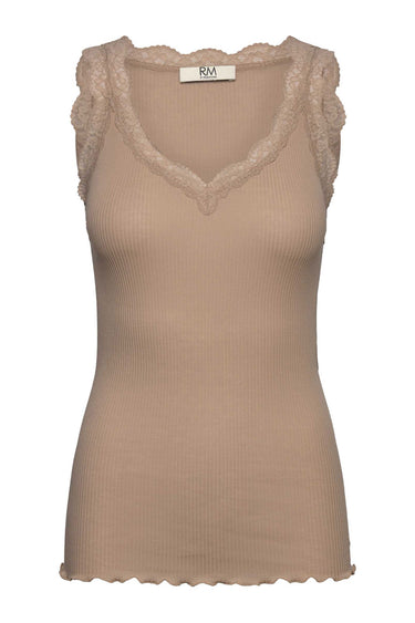 Den lækreste bløde blondetop fra Rosemunde med en tætsiddende pasform og en fin krøllet kant i bunden.