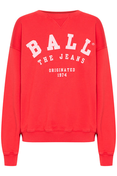 OBS! Fjernlager. Levering kan blive forlænget med 2-3 dage, hvis varen ikke findes i vores butik lige nu.Lækker sweatshirt fra Ball med lange ærmer, rund halsudskæring og et cool print på brystet.