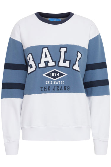 Cool sweatshirt fra Ball med lange ærmer, rund hals og brede ribkanter.Sweatshirten har også en løs silhuet og et cool print på fronten.