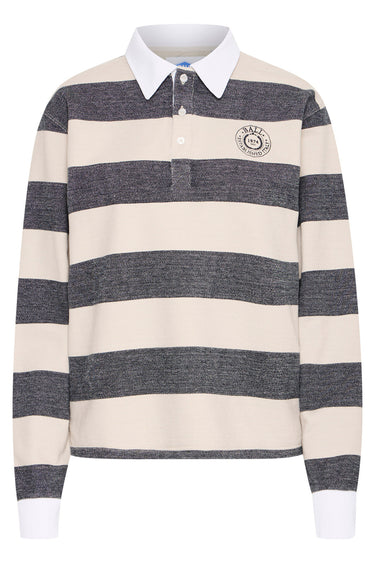 OBS! Fjernlager. Levering kan blive forlænget med 2-3 dage, hvis varen ikke findes i vores butik lige nu.Smart stribet polo fra Ball med lange ærmer, krave i halsen og et kort knappanel over brystet.