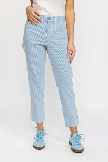 OBS! Fjernlager. Levering kan blive forlænget med 2-3 dage, hvis varen ikke findes i vores butik lige nu.Flotte bukser fra 2-Biz med et klassisk snit, fine striber og en cropped længde.