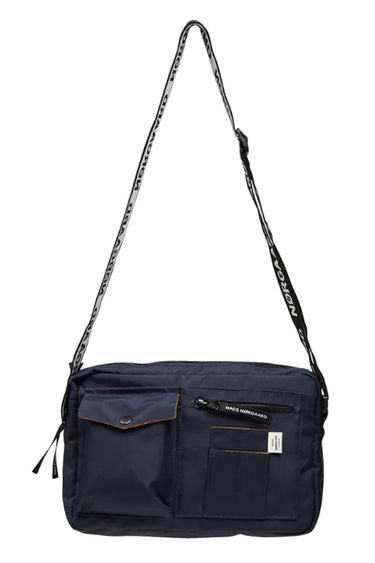 - Smart taske fra Mads Nørgaard. Den har en bred, justerbar logorem og lukkes med en lynlås. Den er delt i to indvendige rum, som har hver sin inderlomme, den har kontrastfarvet foer, og den har tre udvendige lommer, med enten lynlås eller trykknap.