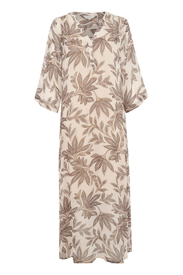 OBS! Fjernlager. Levering kan blive forlænget med 2-3 dage, hvis varen ikke findes i vores butik lige nu.Flot kjole fra Part Two med ¾ lange ærmer, v-hals og en afslappet pasform.Kjolen har også et smukt print i flotte farver og et dejlig blødt underskørt.